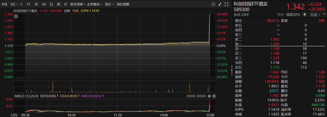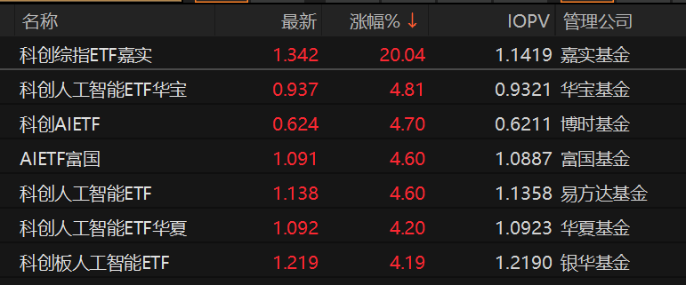 嘉实科创综指ETF突发涨停