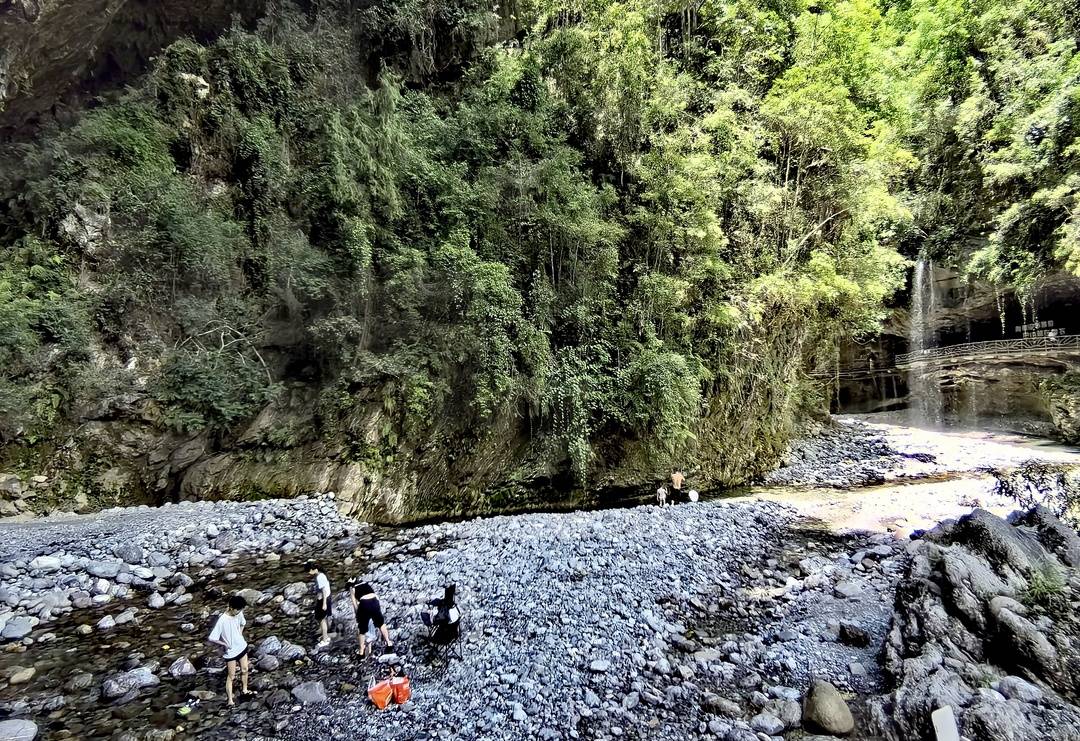 随着人流前行,一泓溪流出现在眼前,饱受烈日摧残的人们,迫不及待地踏入溪流之中,或泼水嬉闹,或静坐溪边,尽情享受着来自桃溪谷的清凉馈赠。在恣意妄为的踏水声中,在发自心底的欢歌声中,夏日的快乐在这里得以挥洒。